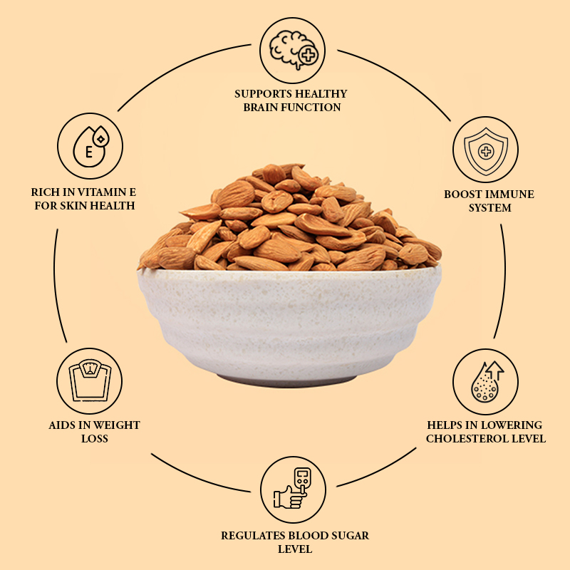 Rich in Nutrients: Mamra almonds are packed with essential nutrients like vitamin E, magnesium, calcium, and healthy fats, promoting overall health and wellness.