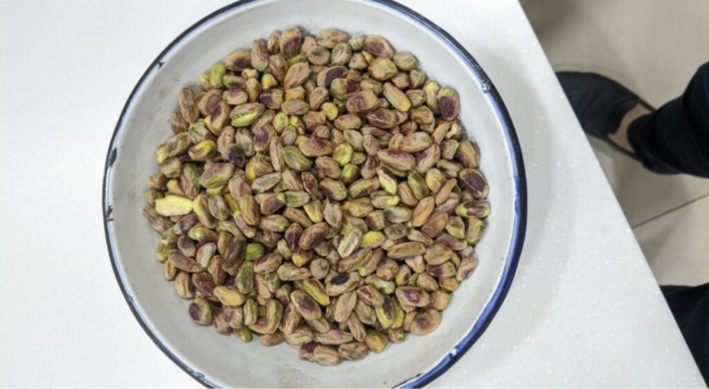 Pistachios are the seeds of the Pistachio tree . They are usually green and taste slightly sweet , They are also called Happy Nut and considered frequent eaten snack nowdays ans largely used in baking , confectioneries , ice creams or Crunchy layering for fish and meat .